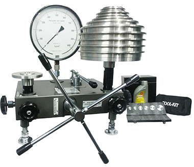 The Dead Weight Pressure Gauge Testers make use of the relationship between pressure acting on the known area of a vertically free floating piston producing a force balanced by known dead weight.