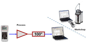 This method is used in cases where the sensor can not be removed from the process or the facility can not have down time. All of the inaccuracies are collected in a single certificate and documentation is easy. However, the significant drawback is that the process has limited variability so the amount of data points used typically suffers when using this approach. This would also require that there is an extra thermal pocket or pressure tap for the reference instrument.