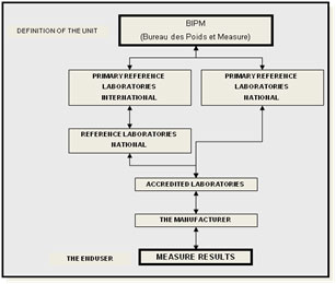 Designated organizations maintain the references for the units of measure. In the USA, the Commerce Department is responsible for the maintenance of the standards. The National Institute of Standards and Technology is the division of the Commerce Department directly responsible. Other countries have their own standards organizations. Calibration of a measuring instrument to the reference standards establishes Traceability.